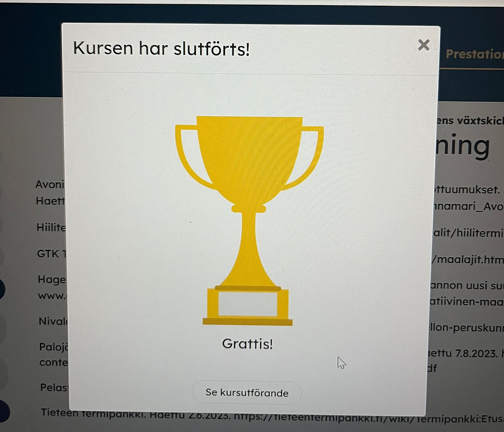 Kom ihåg att kontrollera att kursen blivit slutförd (kolla bilden nedan).